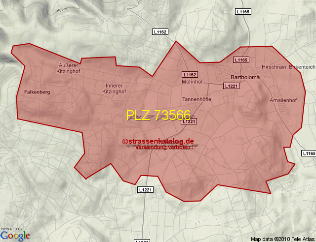 Straßenverzeichnis zur Postleitzahl 73566