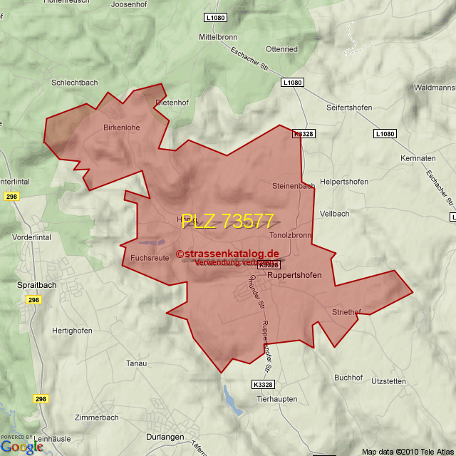 Straßenverzeichnis zur Postleitzahl 73577