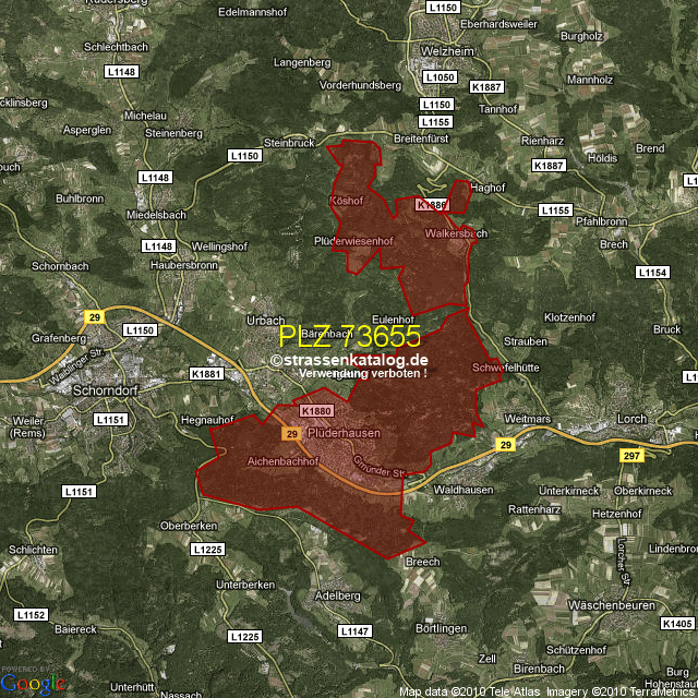 Postleitzahlgebiet (PLZ) 73655