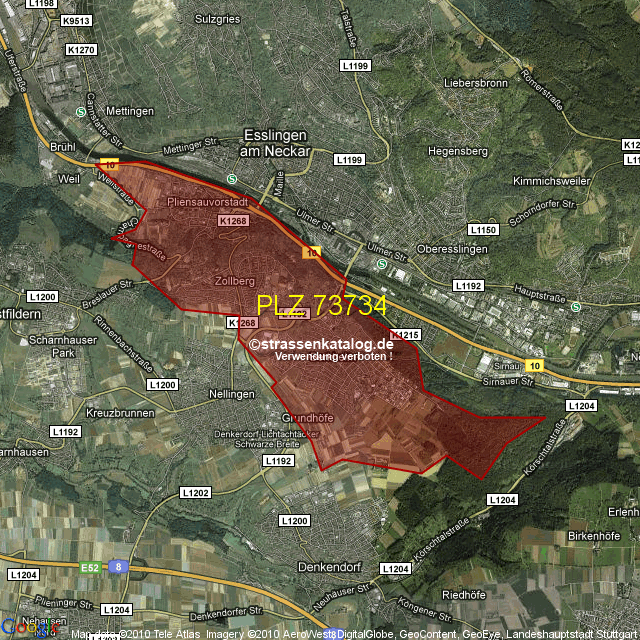 Ortsteile von Esslingen mit der PLZ 73734