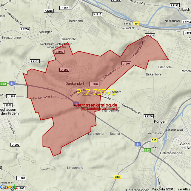 Straßenverzeichnis zur Postleitzahl 73770