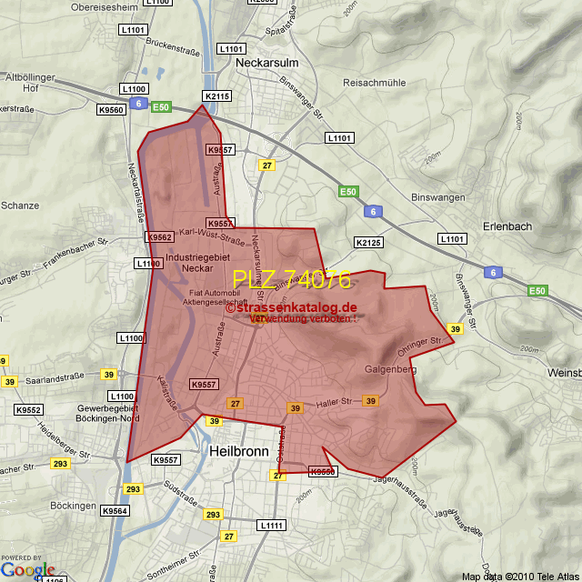 Ortsteile von Heilbronn mit der PLZ 74076