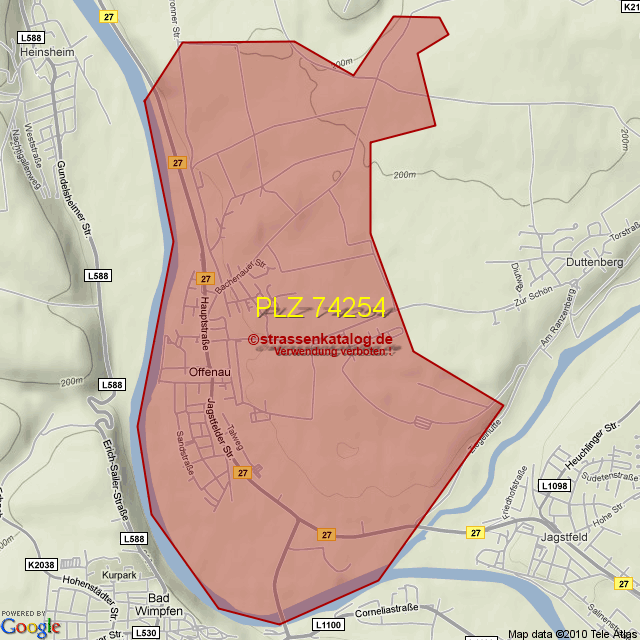 Straßenverzeichnis zur Postleitzahl 74254