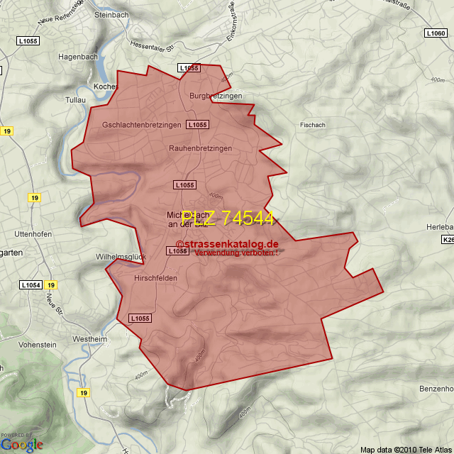 Straßenverzeichnis zur Postleitzahl 74544