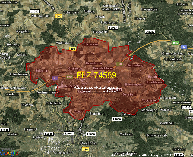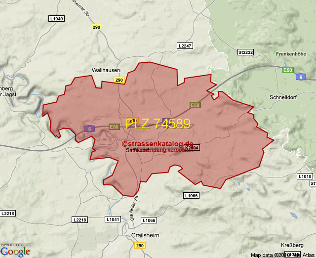 Postleitzahlgebiet (PLZ) 74589