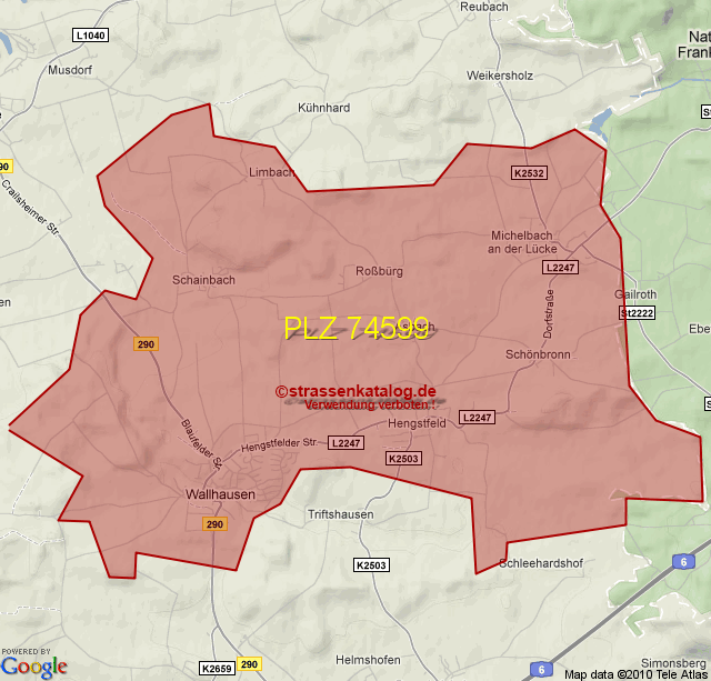 Postleitzahlgebiet (PLZ) 74599