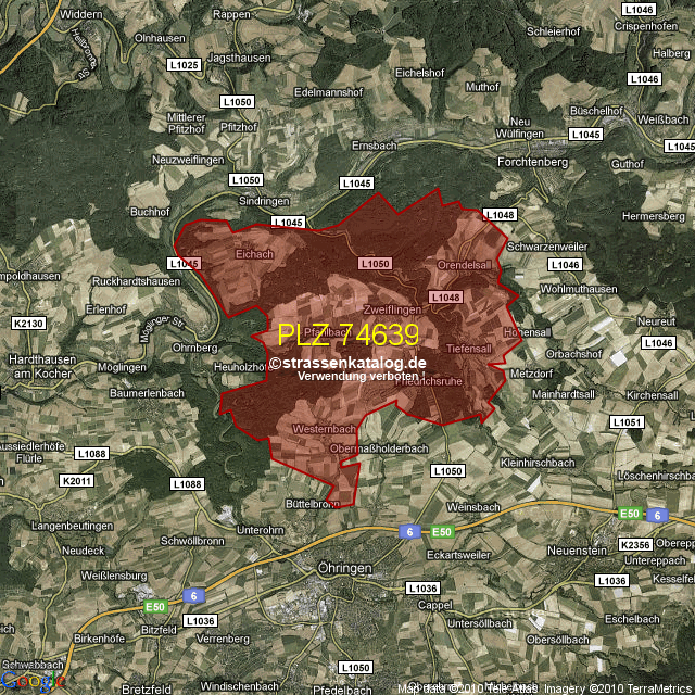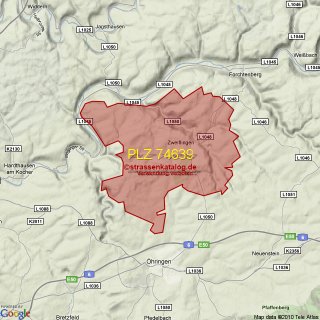Ortsteile von Zweiflingen mit der PLZ 74639