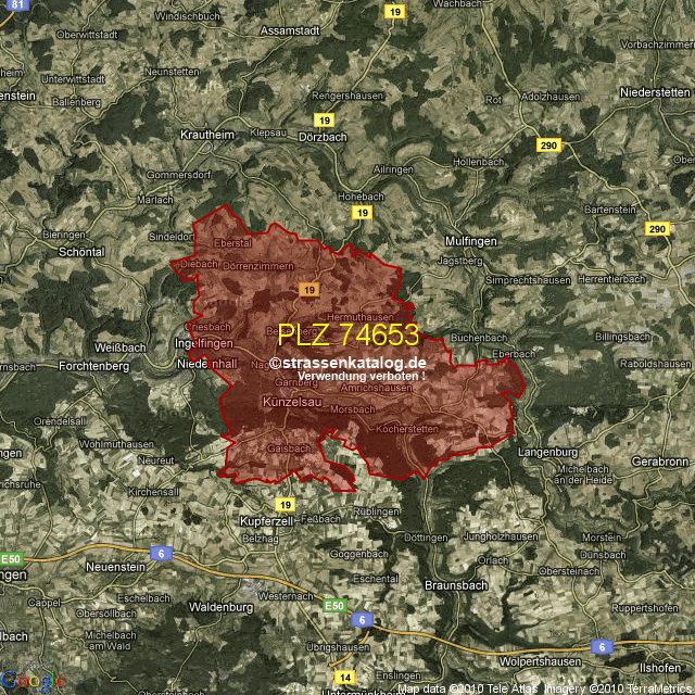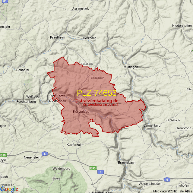 Postleitzahlgebiet (PLZ) 74653