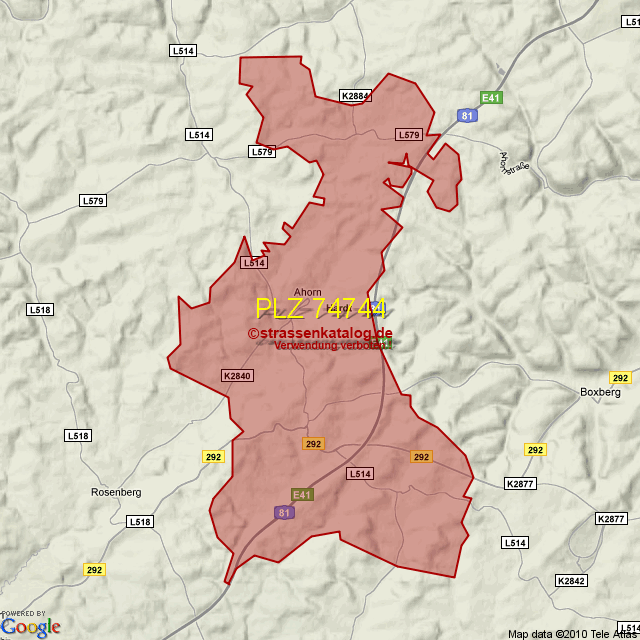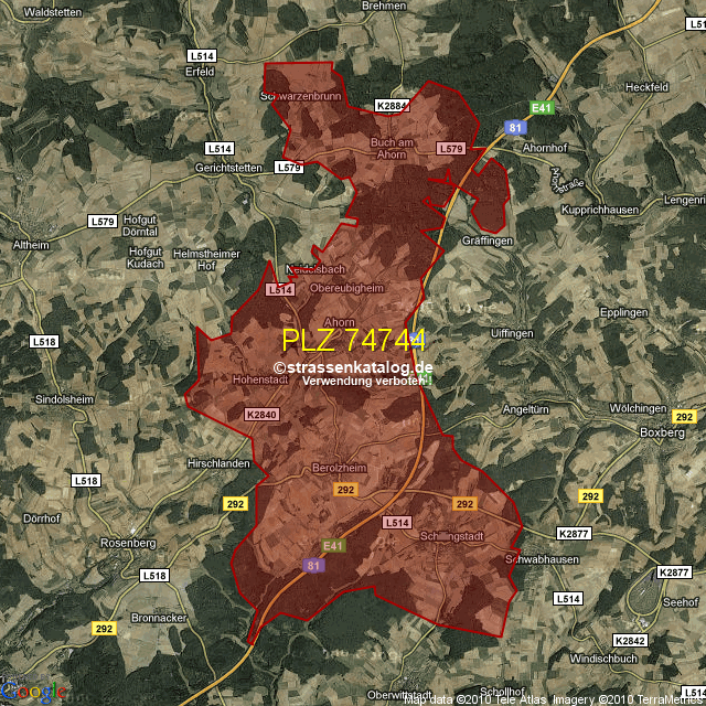 Postleitzahlgebiet (PLZ) 74744