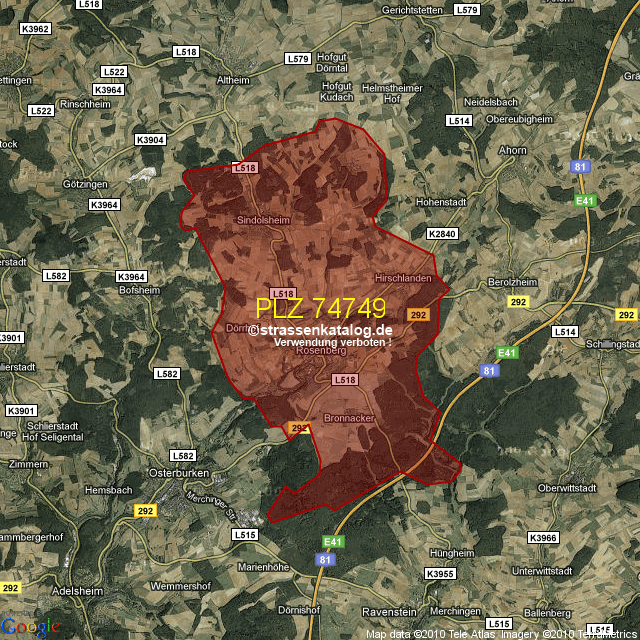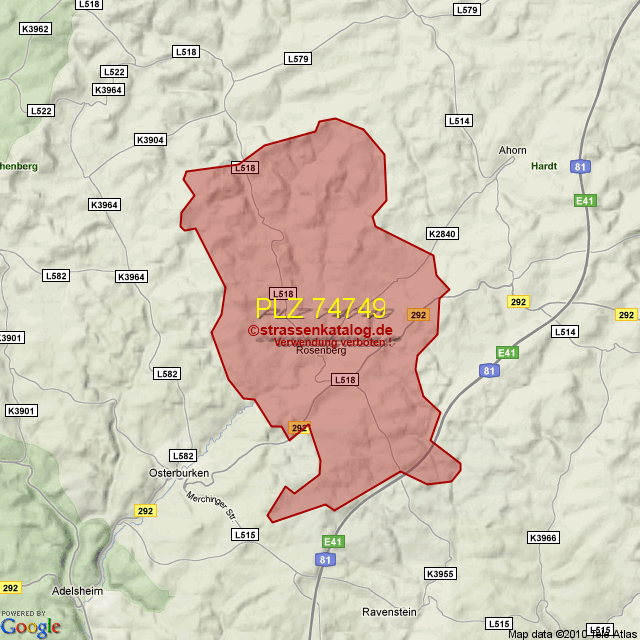 Postleitzahlgebiet (PLZ) 74749