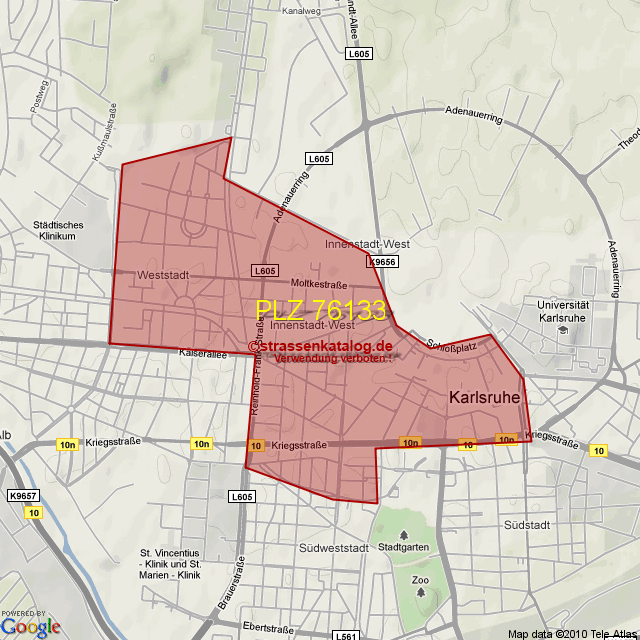 Ortsteile von Karlsruhe mit der PLZ 76133