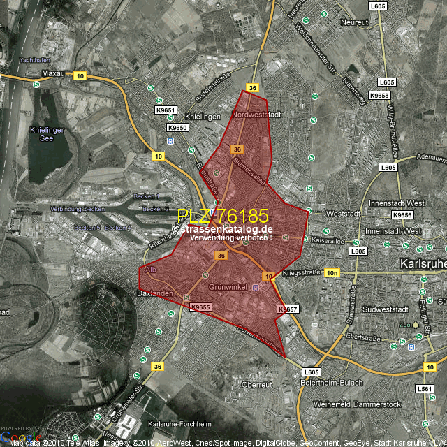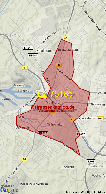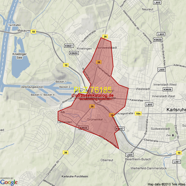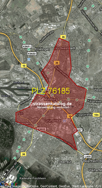 Ortsteile von Karlsruhe mit der PLZ 76185