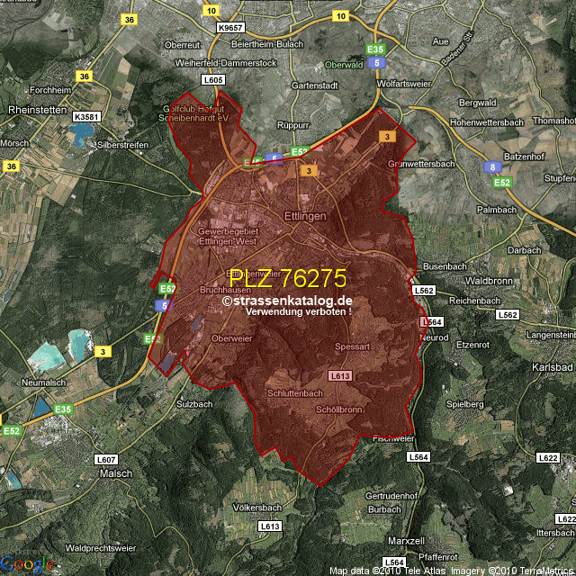 Ortsteile von Ettlingen mit der PLZ 76275