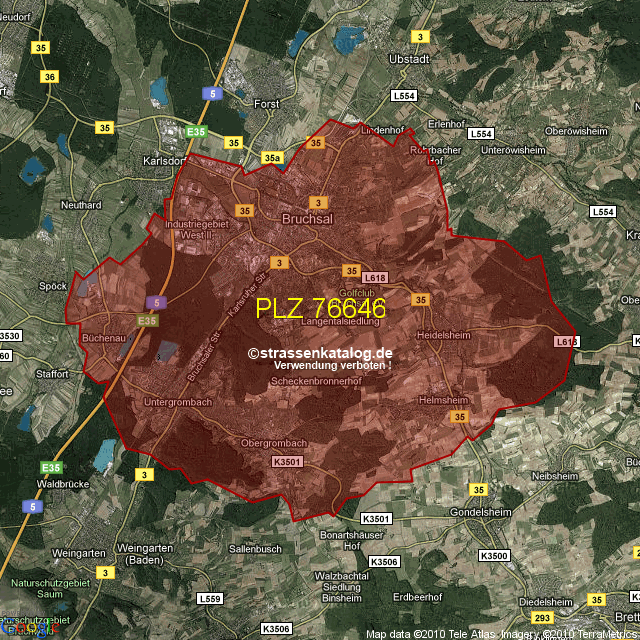 Ortsteile von Bruchsal mit der PLZ 76646