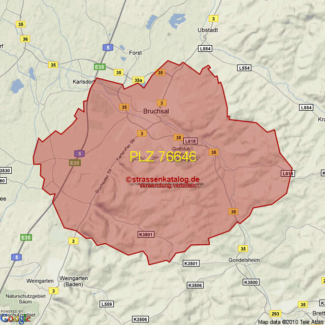 Straßenverzeichnis zur Postleitzahl 76646