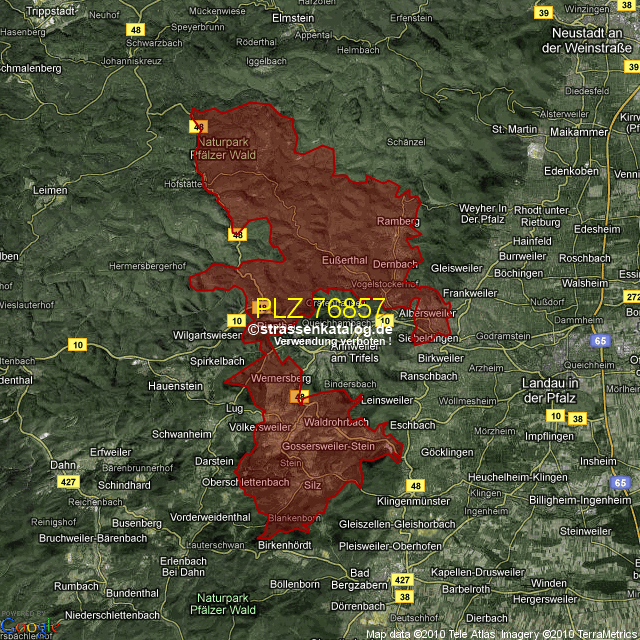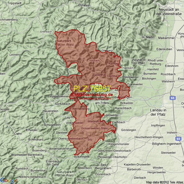 Ortsteile von Gossersweiler-Stein mit der PLZ 76857