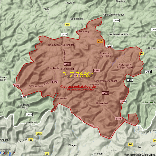Postleitzahlgebiet (PLZ) 76891