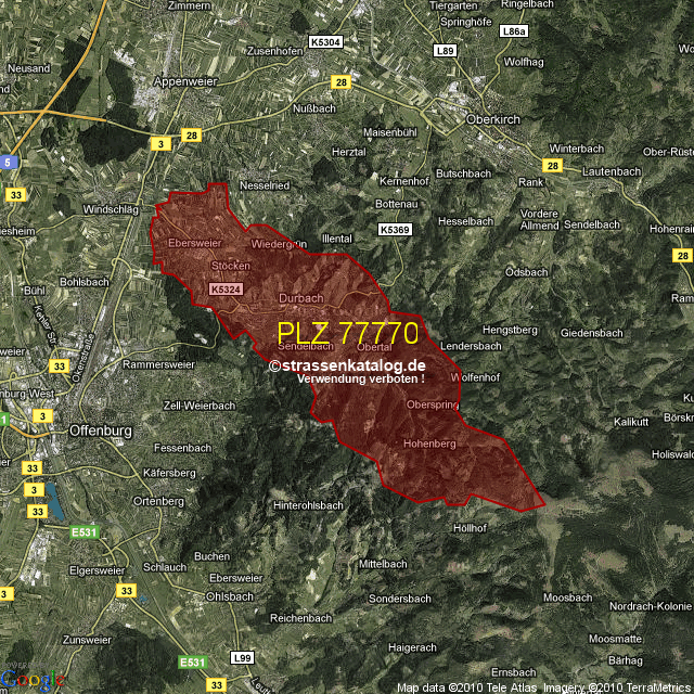 Postleitzahlgebiet (PLZ) 77770