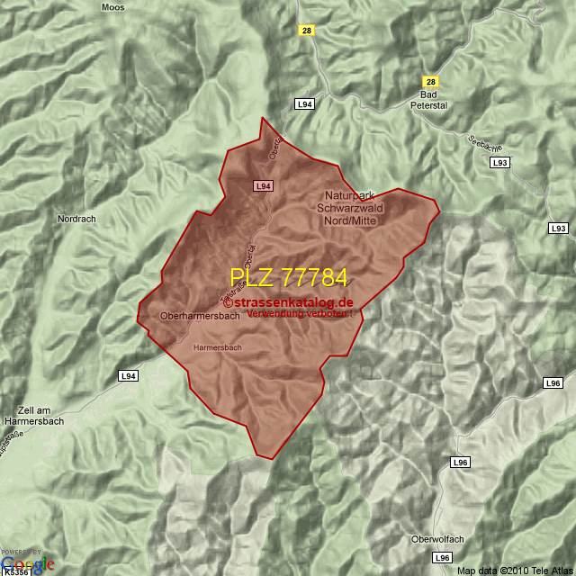 Ortsteile von Oberharmersbach mit der PLZ 77784
