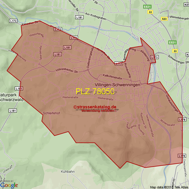 Postleitzahlgebiet (PLZ) 78050