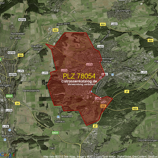 Ortsteile von Villingen-Schwenningen mit der PLZ 78054