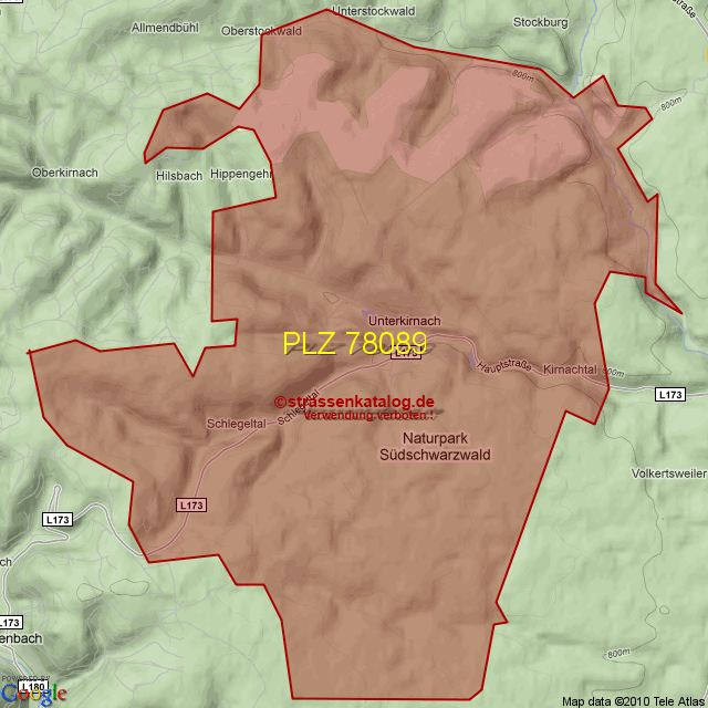 Postleitzahlgebiet (PLZ) 78089