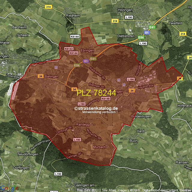 Postleitzahlgebiet (PLZ) 78244