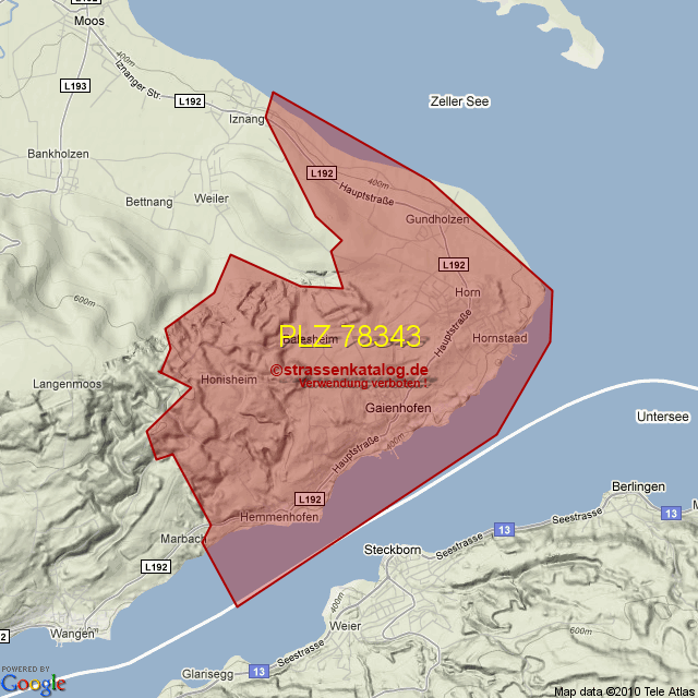 Straßenverzeichnis zur Postleitzahl 78343