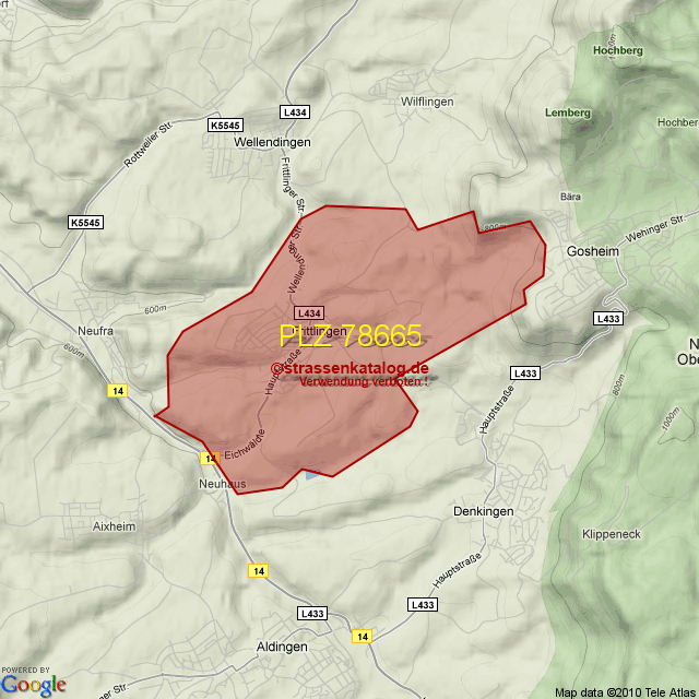 Postleitzahlgebiet (PLZ) 78665