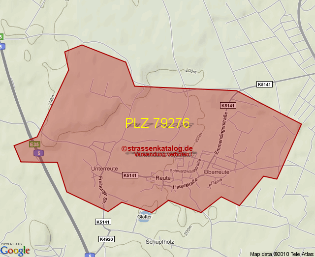 Straßenverzeichnis zur Postleitzahl 79276