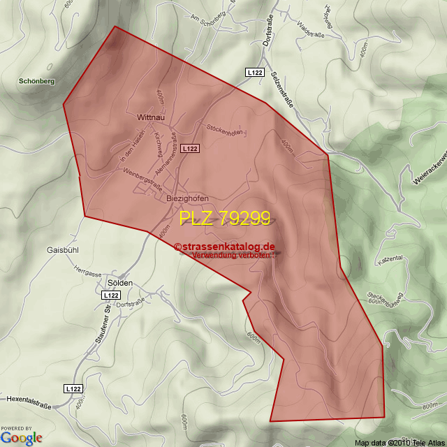 Straßenverzeichnis zur Postleitzahl 79299