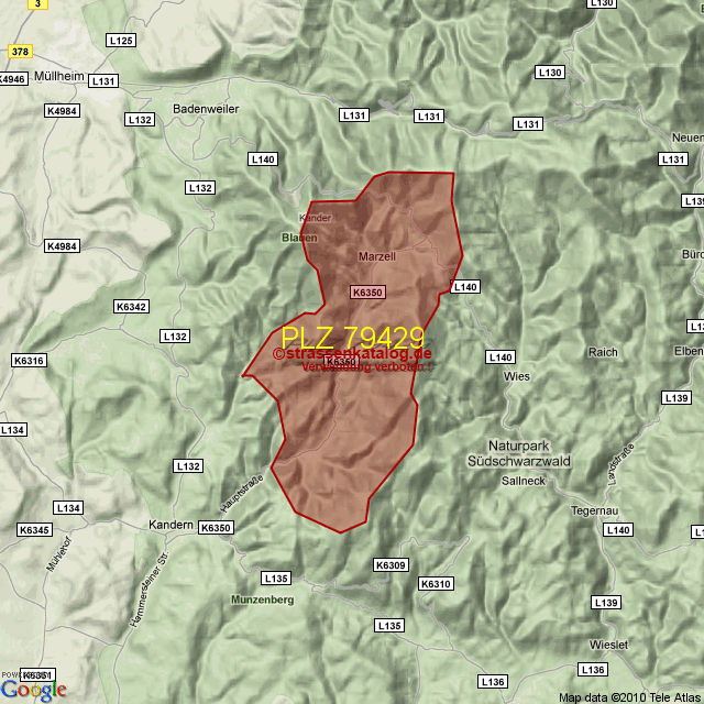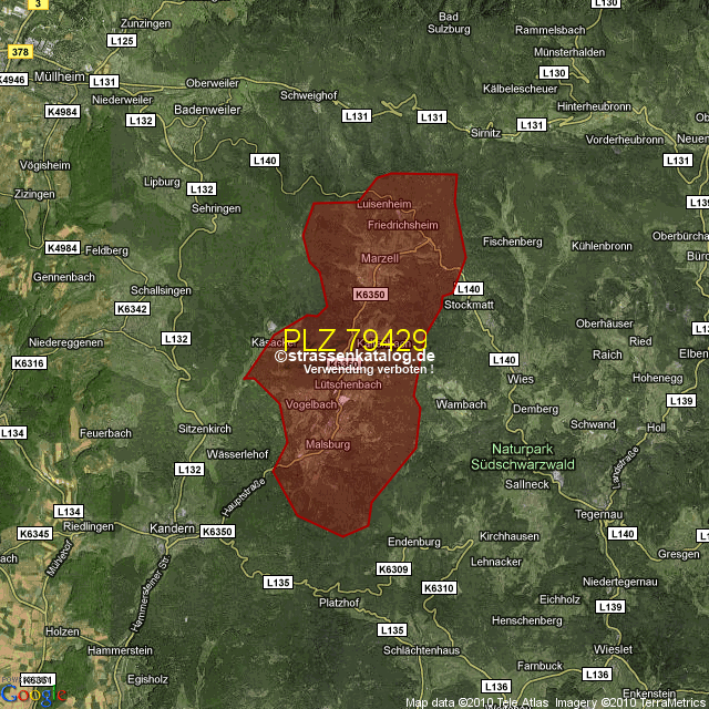 Ortsteile von Malsburg-Marzell mit der PLZ 79429