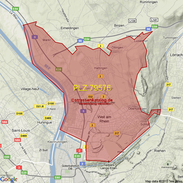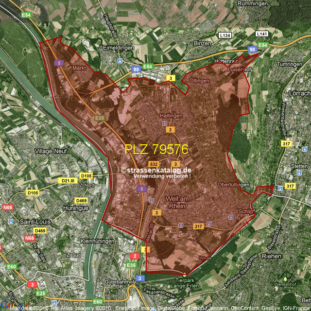 Ortsteile von Weil am Rhein mit der PLZ 79576