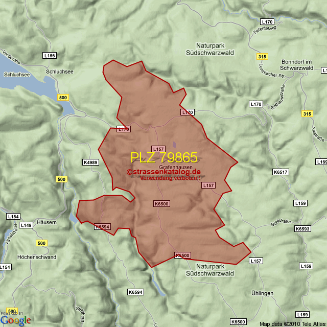 Straßenverzeichnis zur Postleitzahl 79865