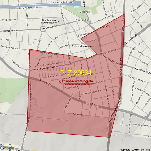 Straßenverzeichnis zur Postleitzahl 80634