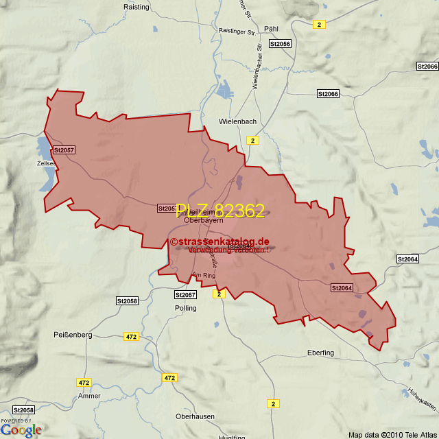Straßenverzeichnis zur Postleitzahl 82362