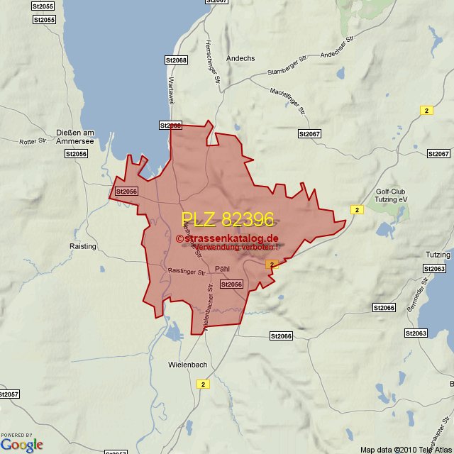Straßenverzeichnis zur Postleitzahl 82396