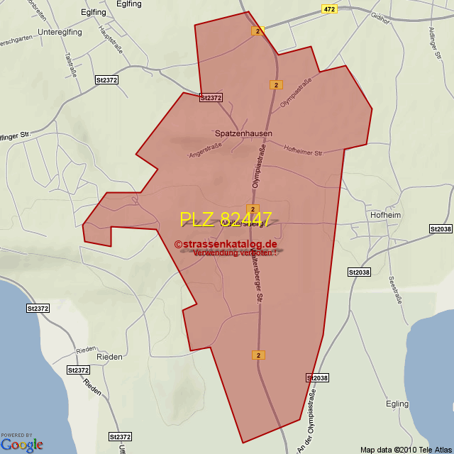 Ortsteile von Spatzenhausen mit der PLZ 82447