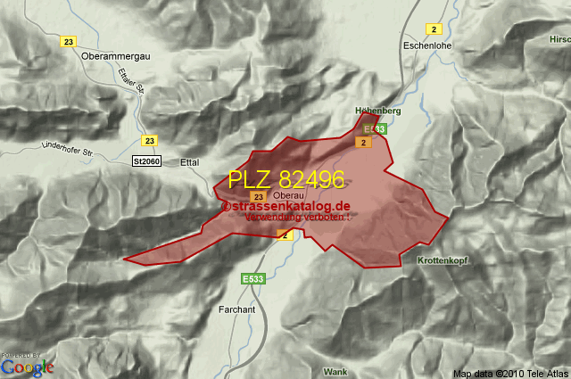 Straßenverzeichnis zur Postleitzahl 82496