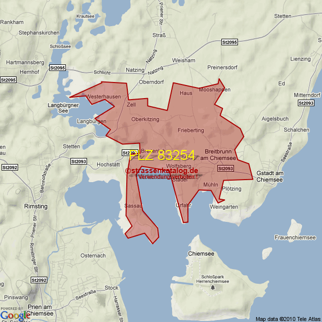 Straßenverzeichnis zur Postleitzahl 83254