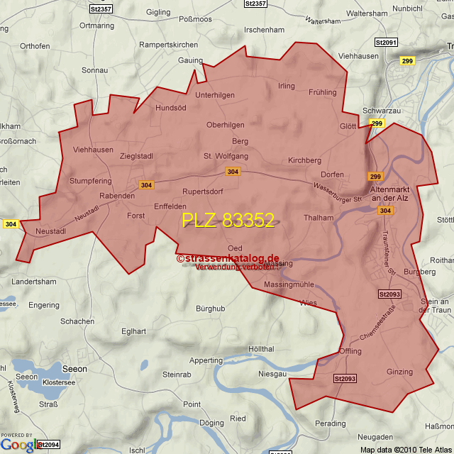 Straßenverzeichnis zur Postleitzahl 83352