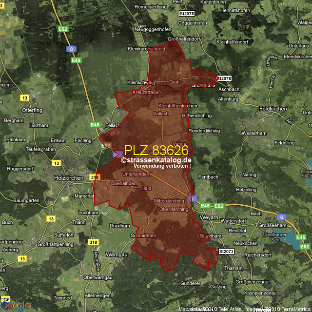 Straßenverzeichnis zur Postleitzahl 83626