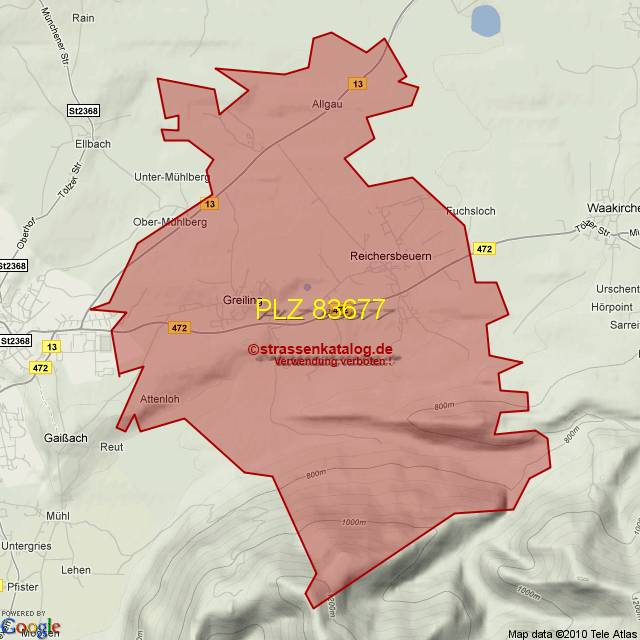 Straßenverzeichnis zur Postleitzahl 83677