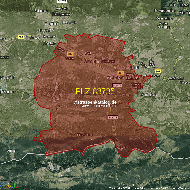 Straßenverzeichnis zur Postleitzahl 83735