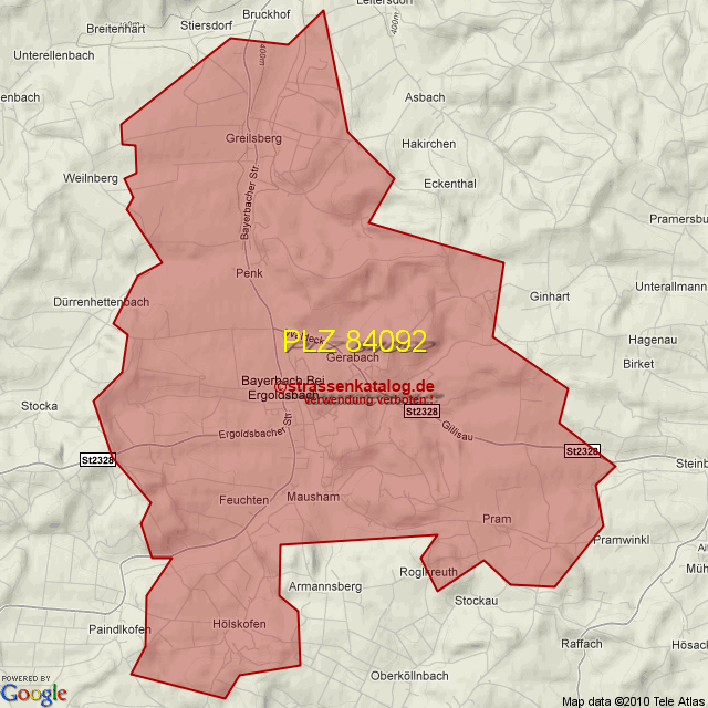 Straßenverzeichnis zur Postleitzahl 84092