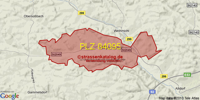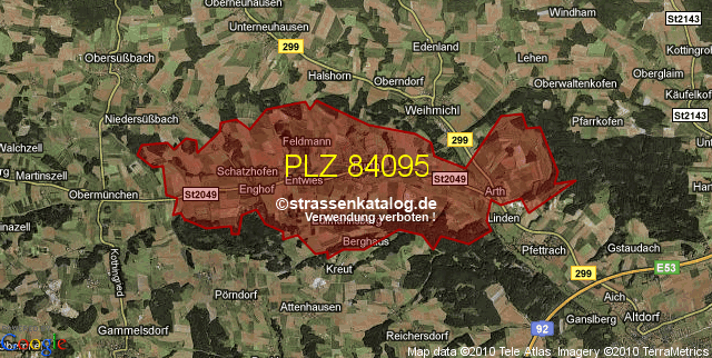 Straßenverzeichnis zur Postleitzahl 84095