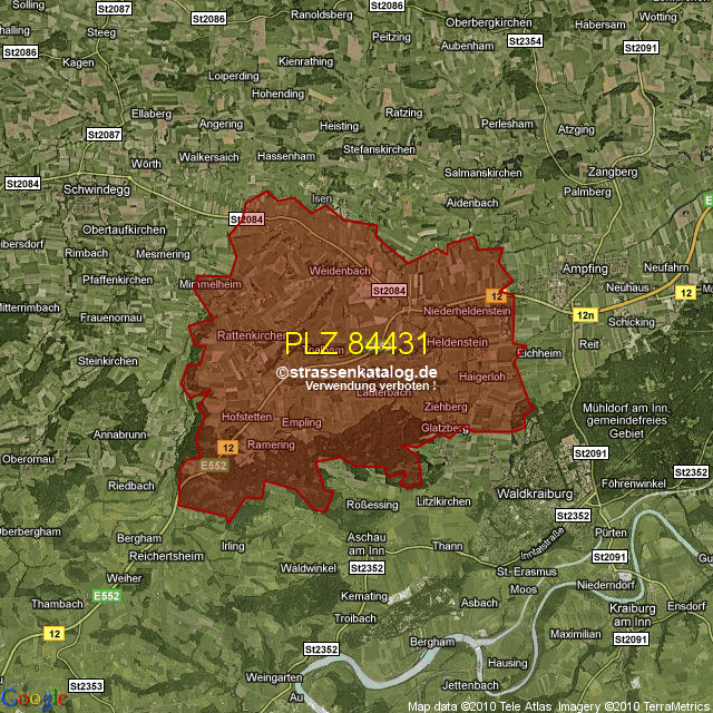 Ortsteile von Rattenkirchen mit der PLZ 84431
