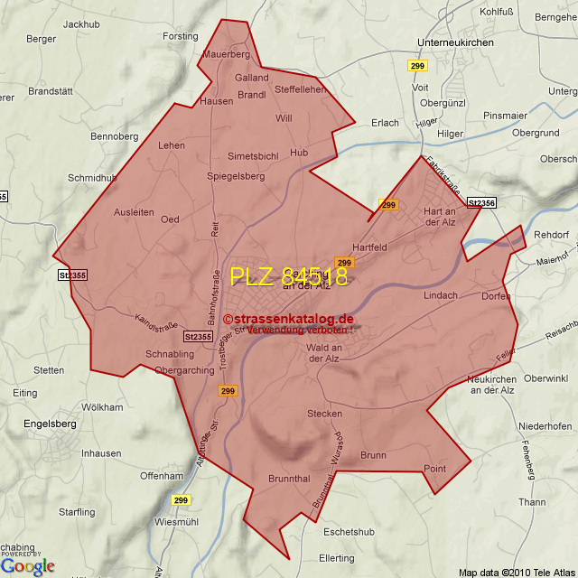 Straßenverzeichnis zur Postleitzahl 84518