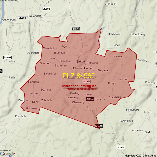 Straßenverzeichnis zur Postleitzahl 84565
