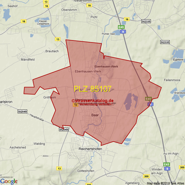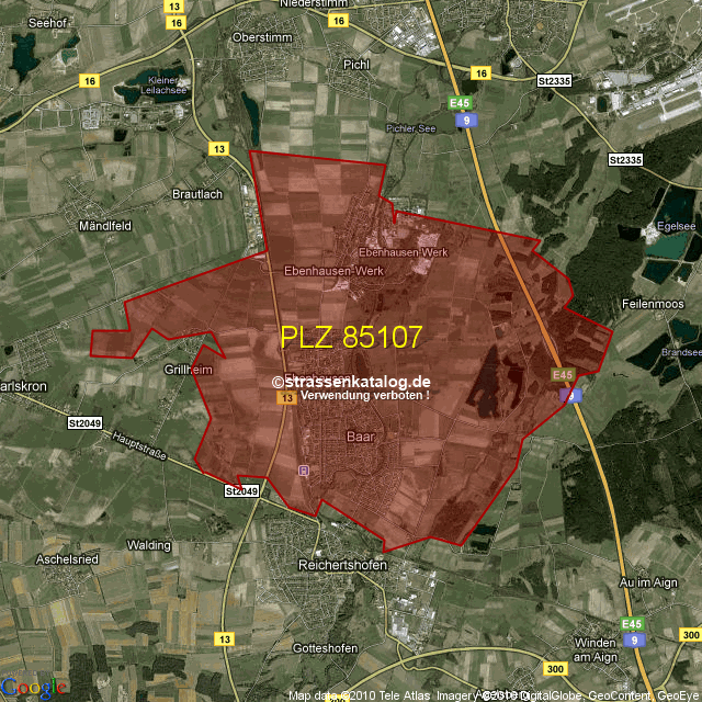 Ortsteile von Baar-Ebenhausen mit der PLZ 85107